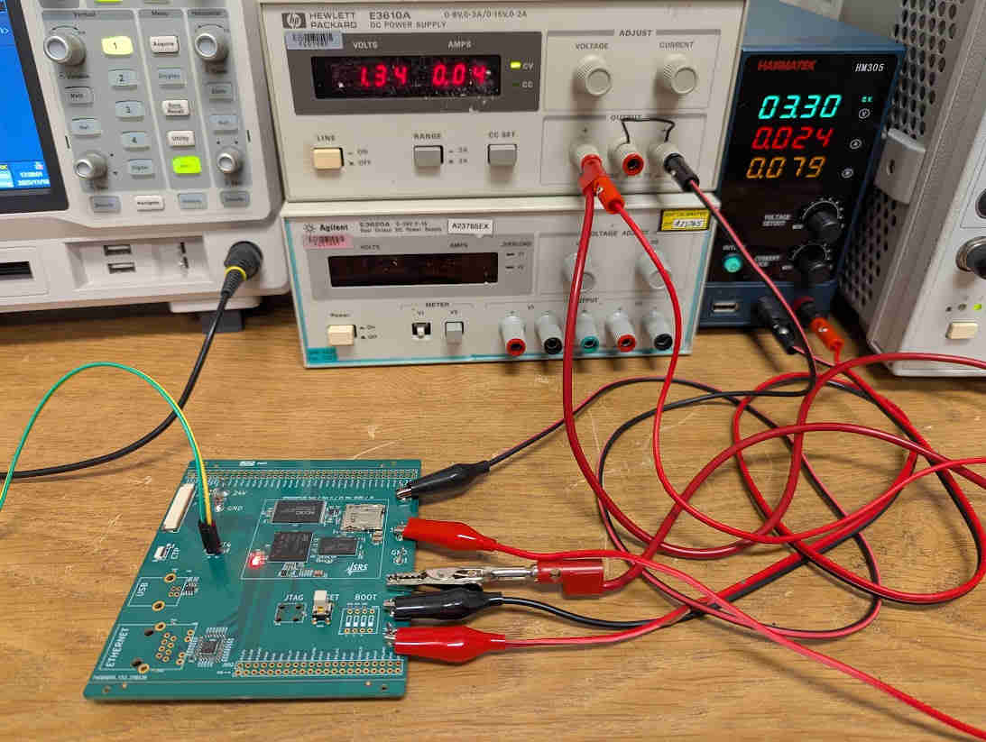 Amazingly, the exact same procedure works on any custom board, so long as it breaks out the UART4 pin and applies 3.3V and 1.35V power supplies in the correct sequence. Find the schematics and layout files for my board in this repository.